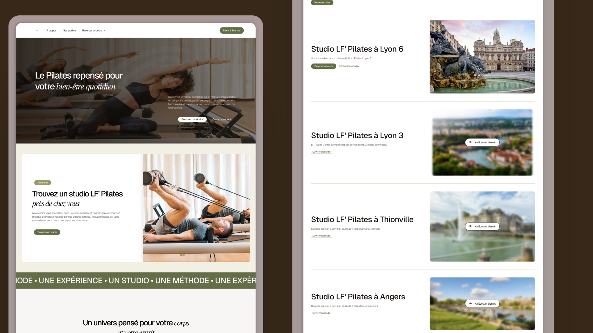 - Renouveler l’image digitale de la marque avec un site moderne, épuré et aligné sur l’identité LF Pilates.