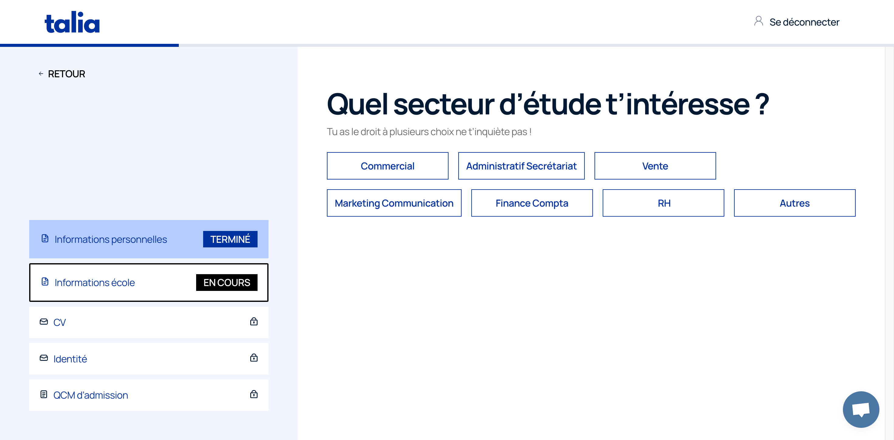 Talia souhaitait donc mettre en place un parcours d’admission clair et efficace. Pour les étudiants, cela signifiait pouvoir déposer facilement leurs informations et leurs documents en ligne, sans avoir à gérer une succession d’étapes complexes.